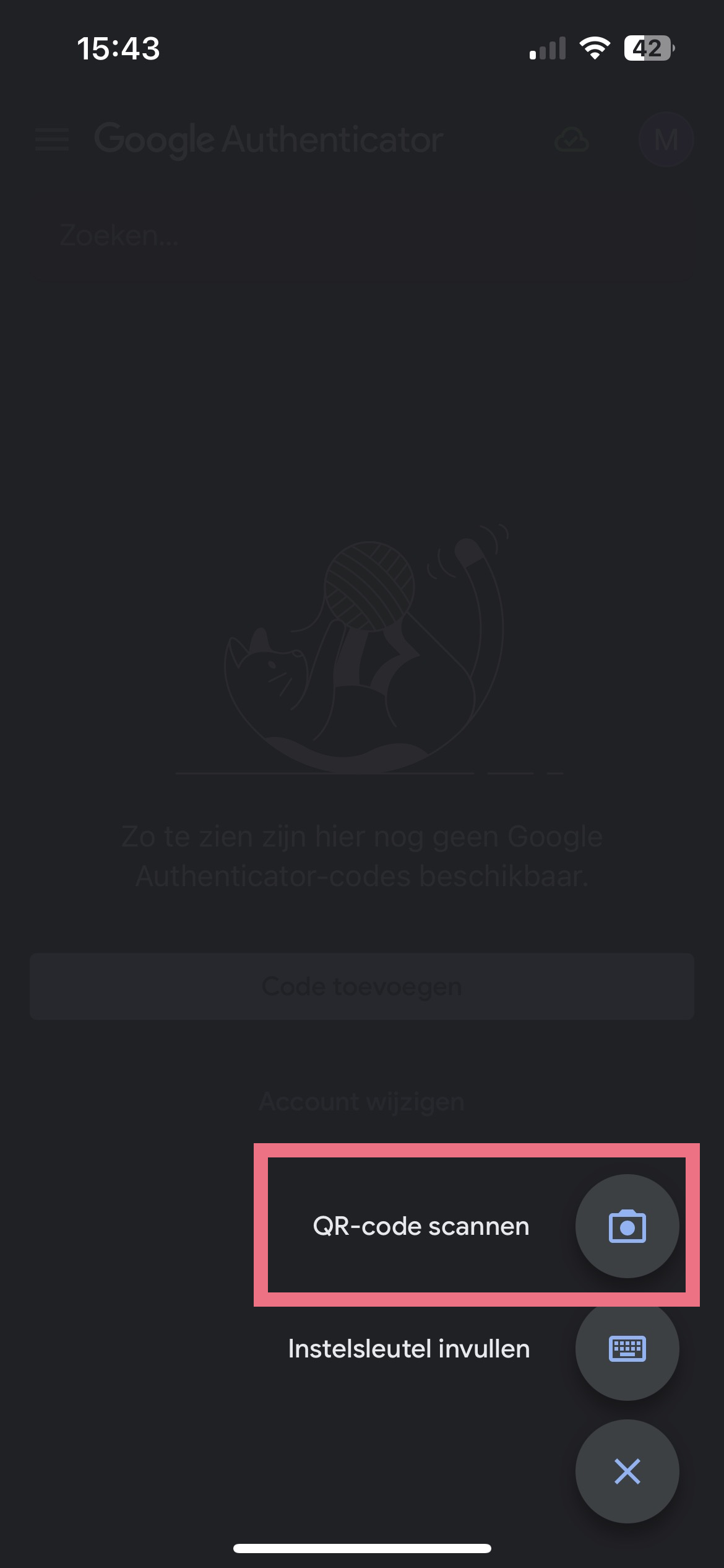 Download de Google Authenticator app hier in de App Store (iPhone) en hier in de Google Play Store (android)