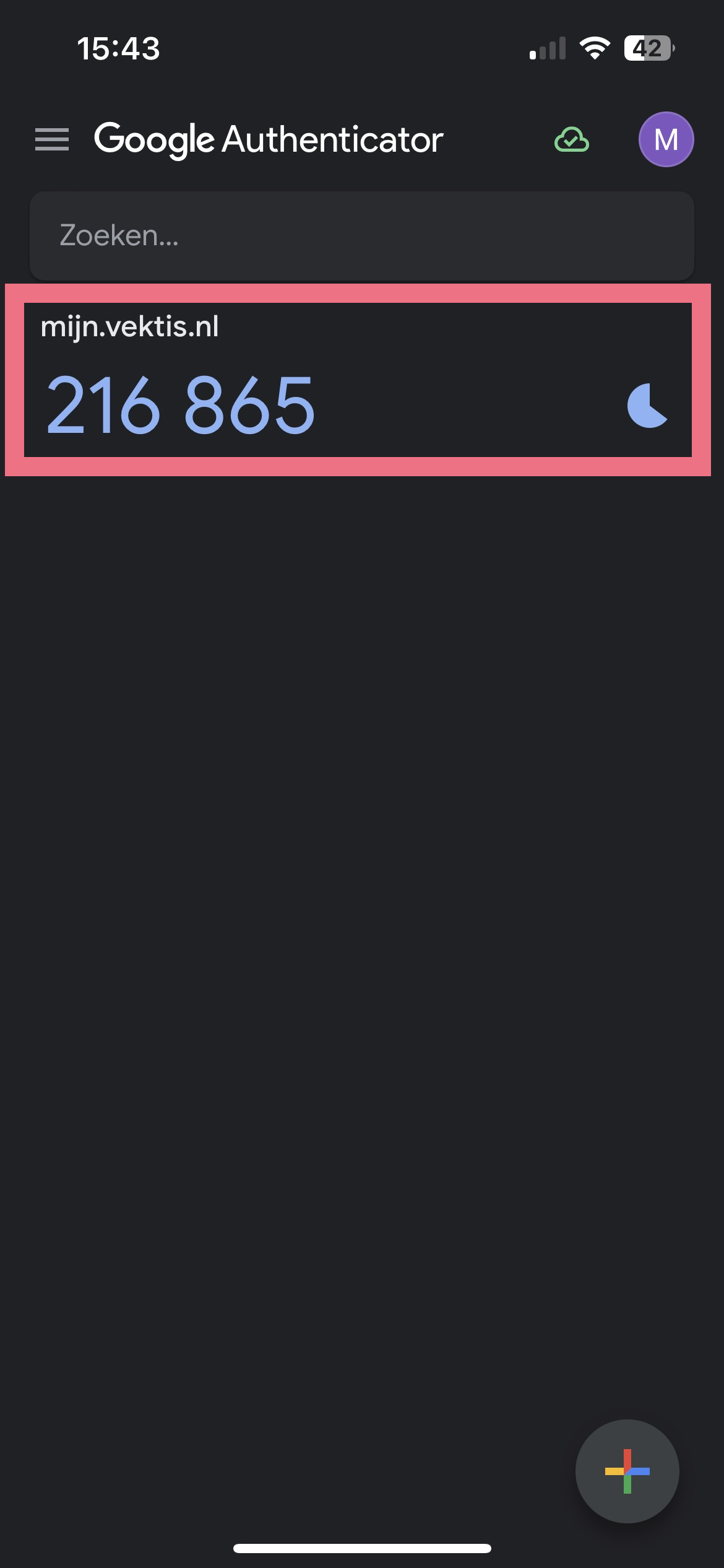 Je hebt nu multifactor op de Google authenticator app ingesteld. Voer de code die je ziet in de app in wanneer je inlogt in je Mijn Vektis-account.