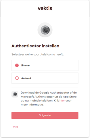 Stap 2: Selecteer jouw type telefoon en download een authenticator app naar jouw keuze.