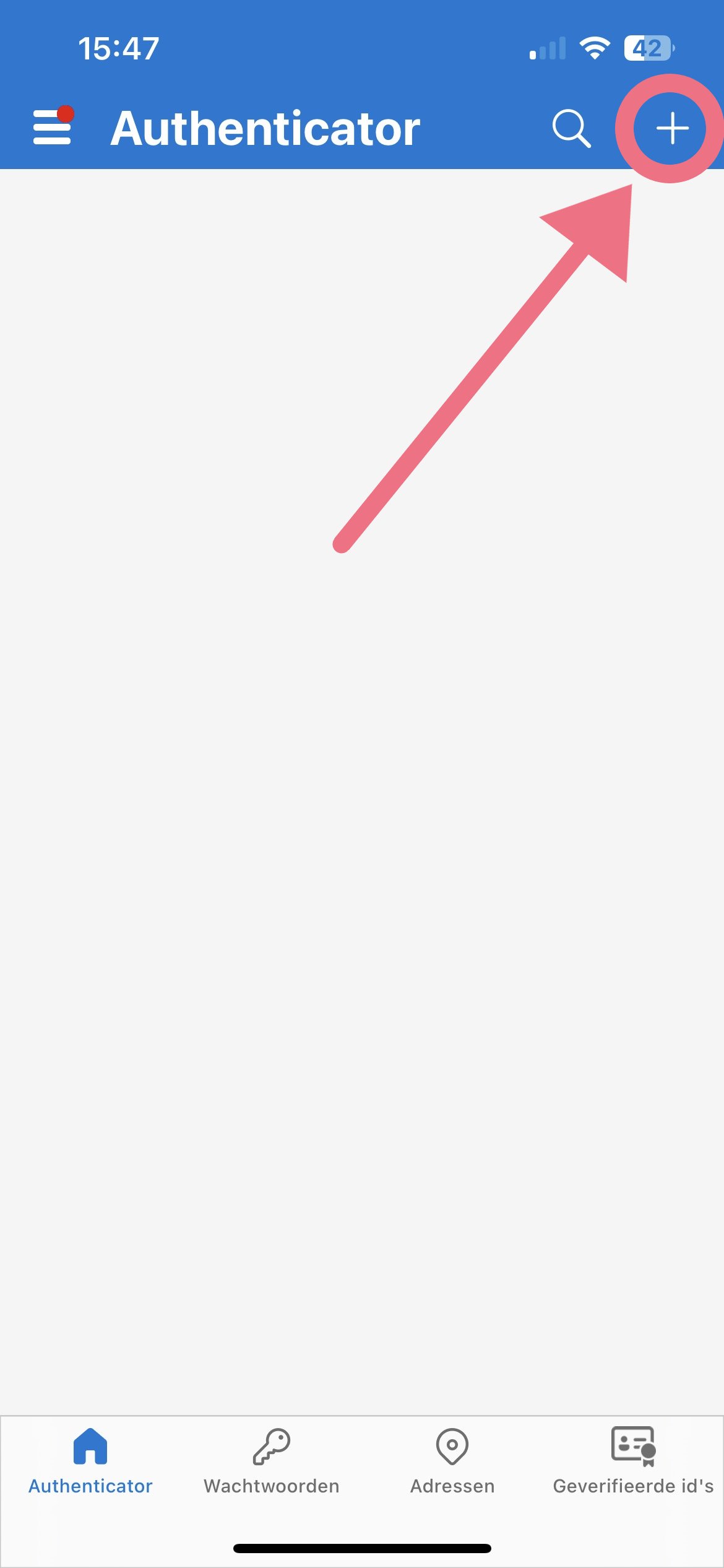 STAP 1: Druk op het '+' icoontje, rechtsboven in het scherm.